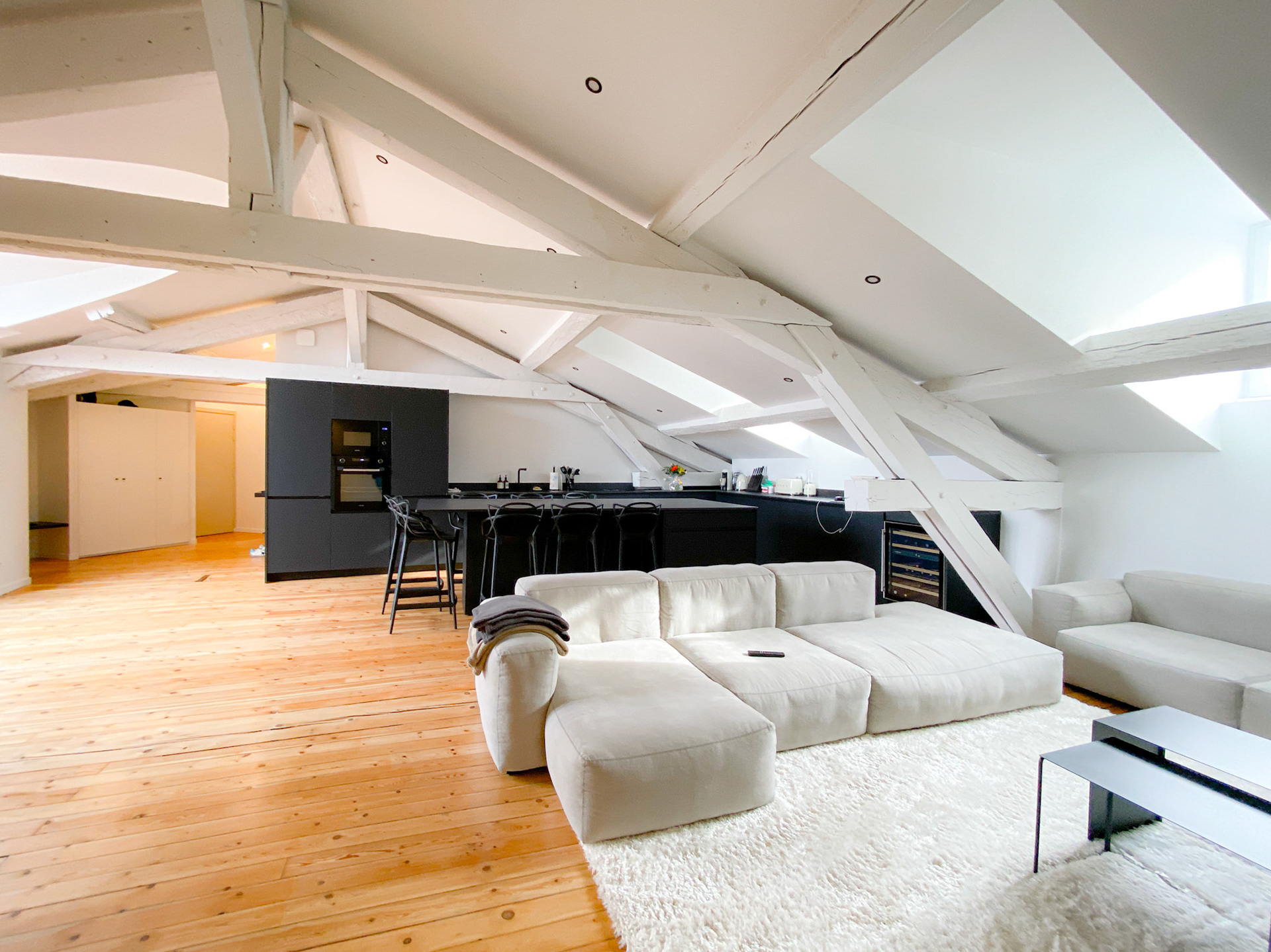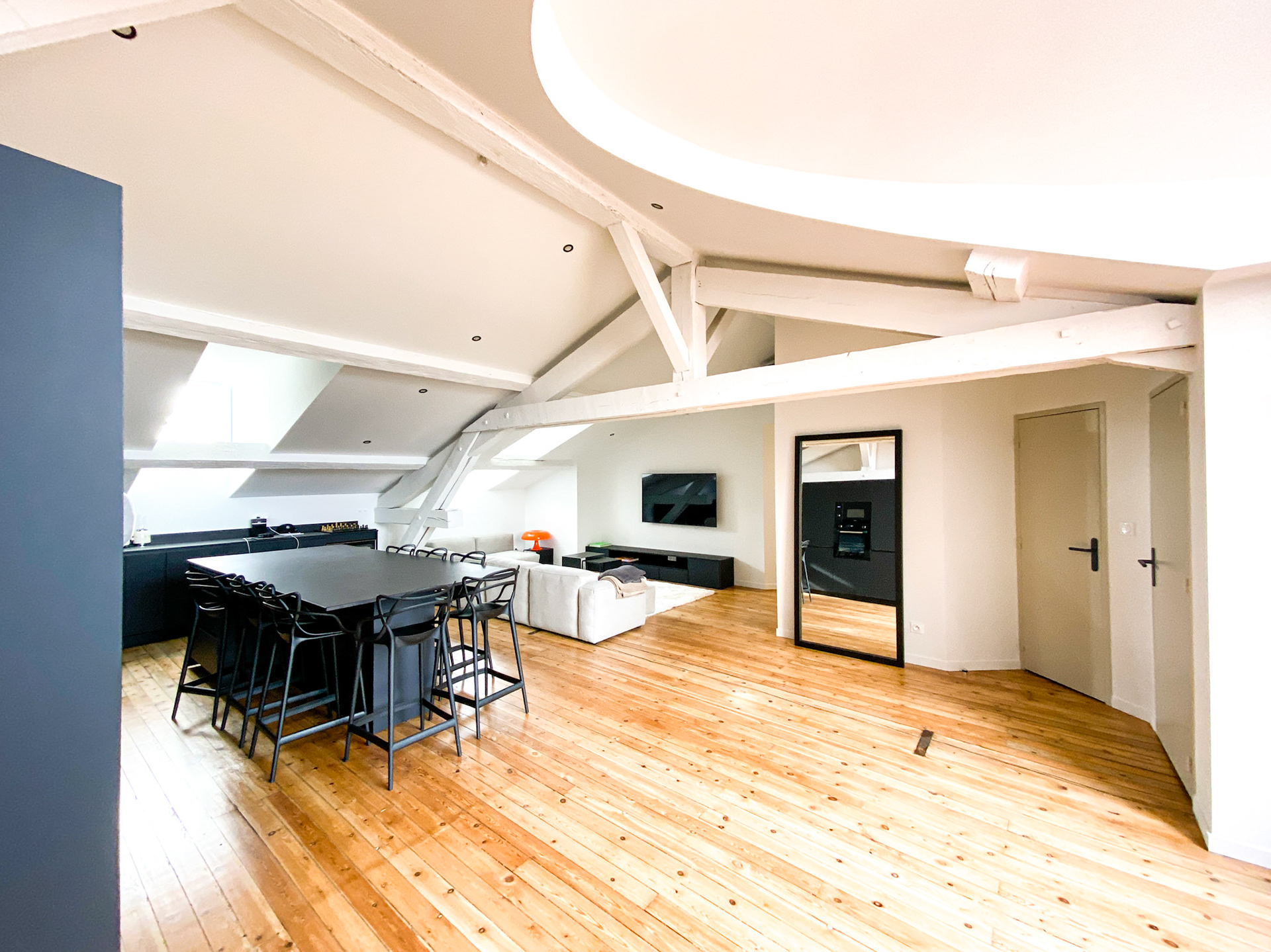 Réaménagement d'un appartement mansardé toulousain dans un immeuble de caractère. Ouverture des volumes et modernisation des usages. Respect du caractère et des qualité de l'existant.