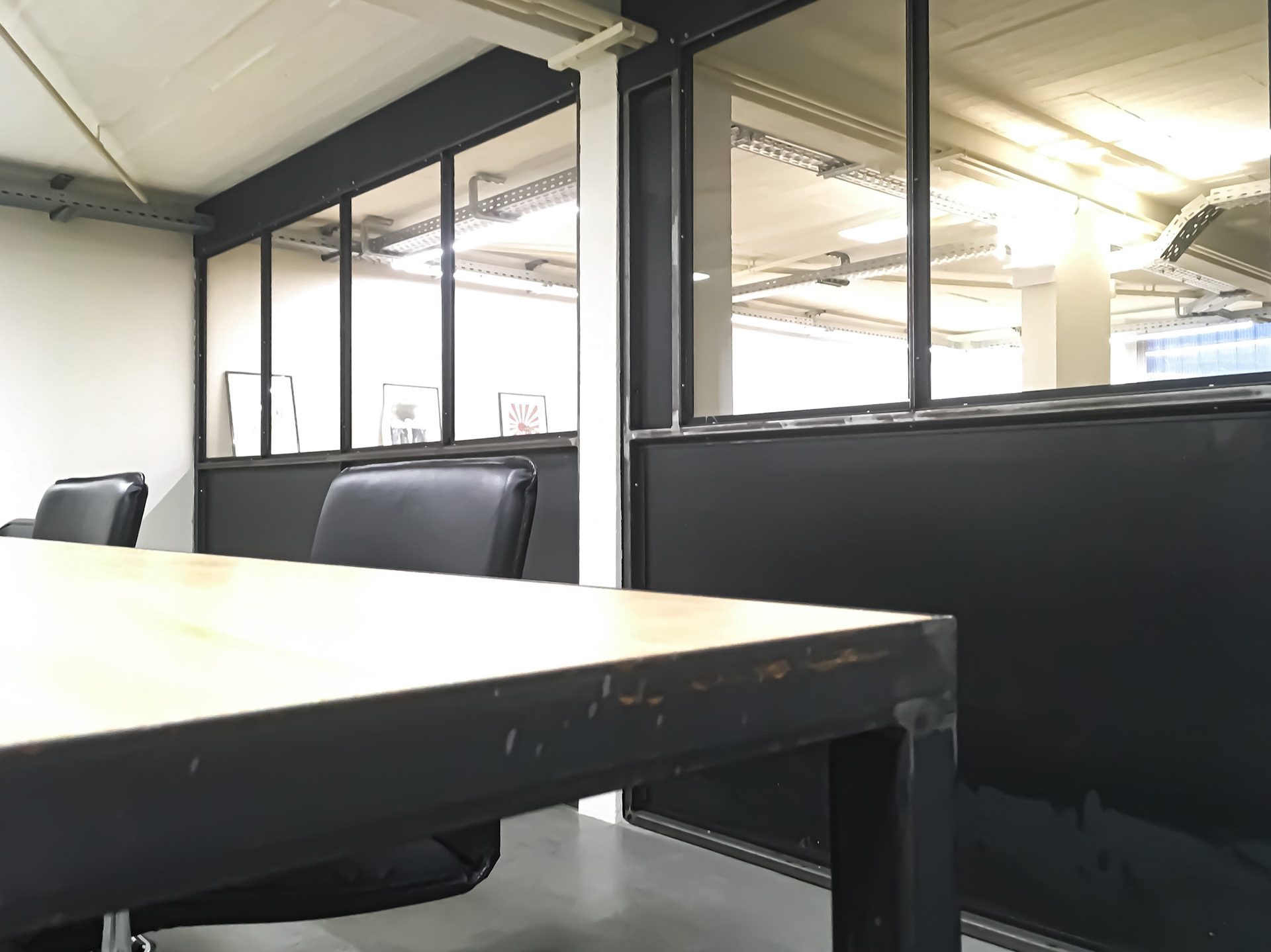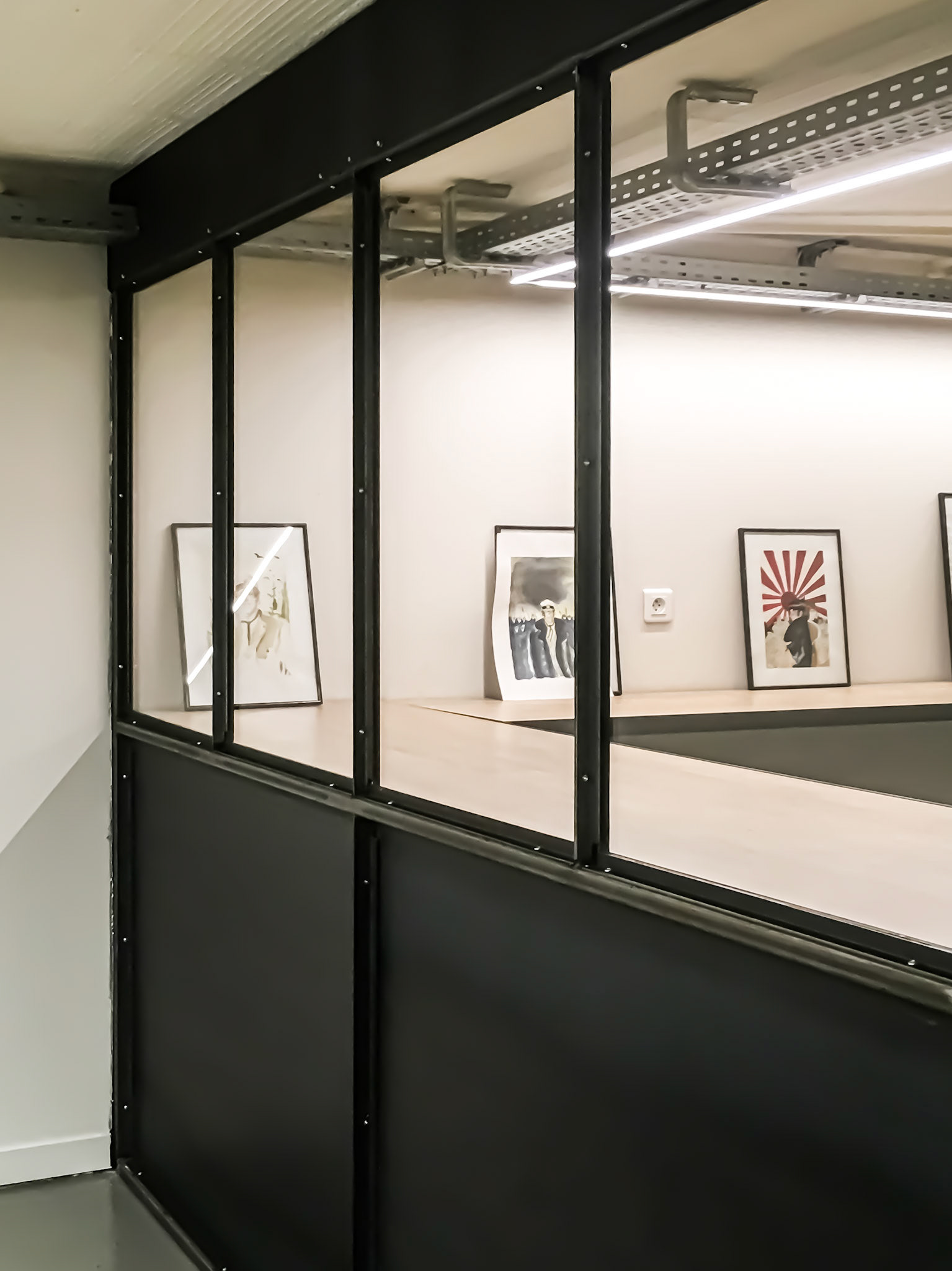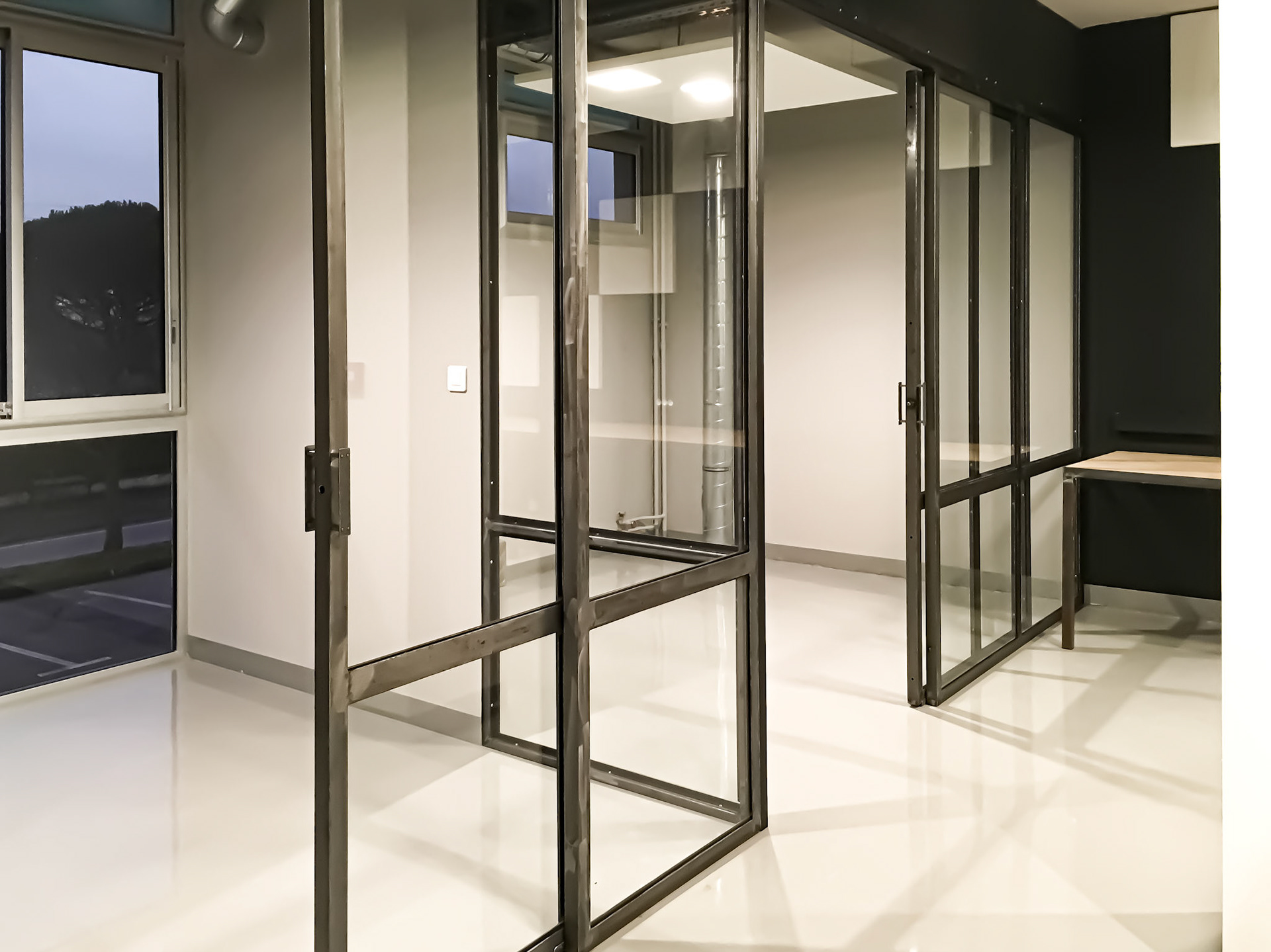 Réhabilitation et réaménagement d'une ancienne pharmacie en local de bureau avec verrières acier sur mesure et design mobilier. (photos Architecture Office)