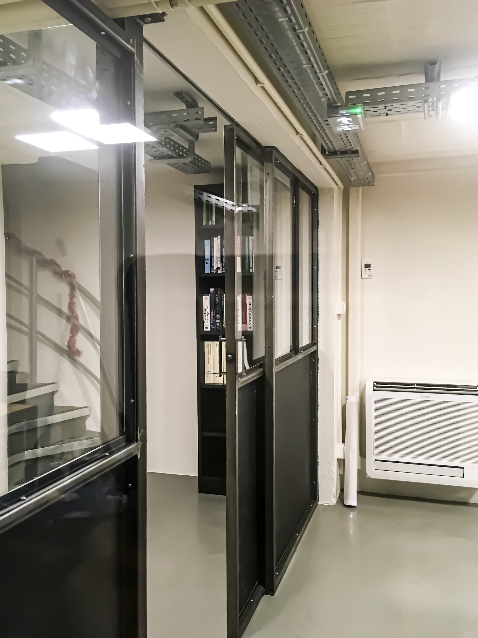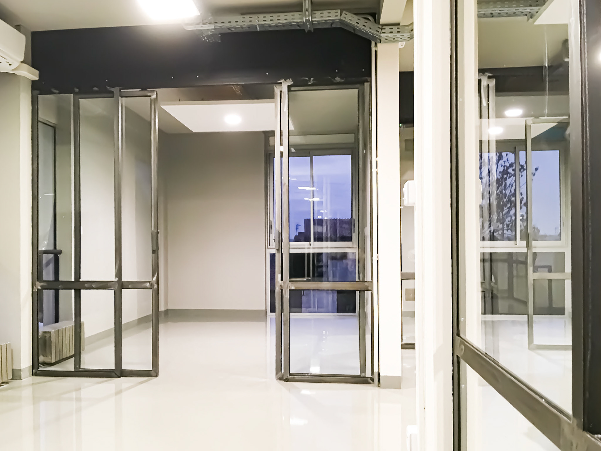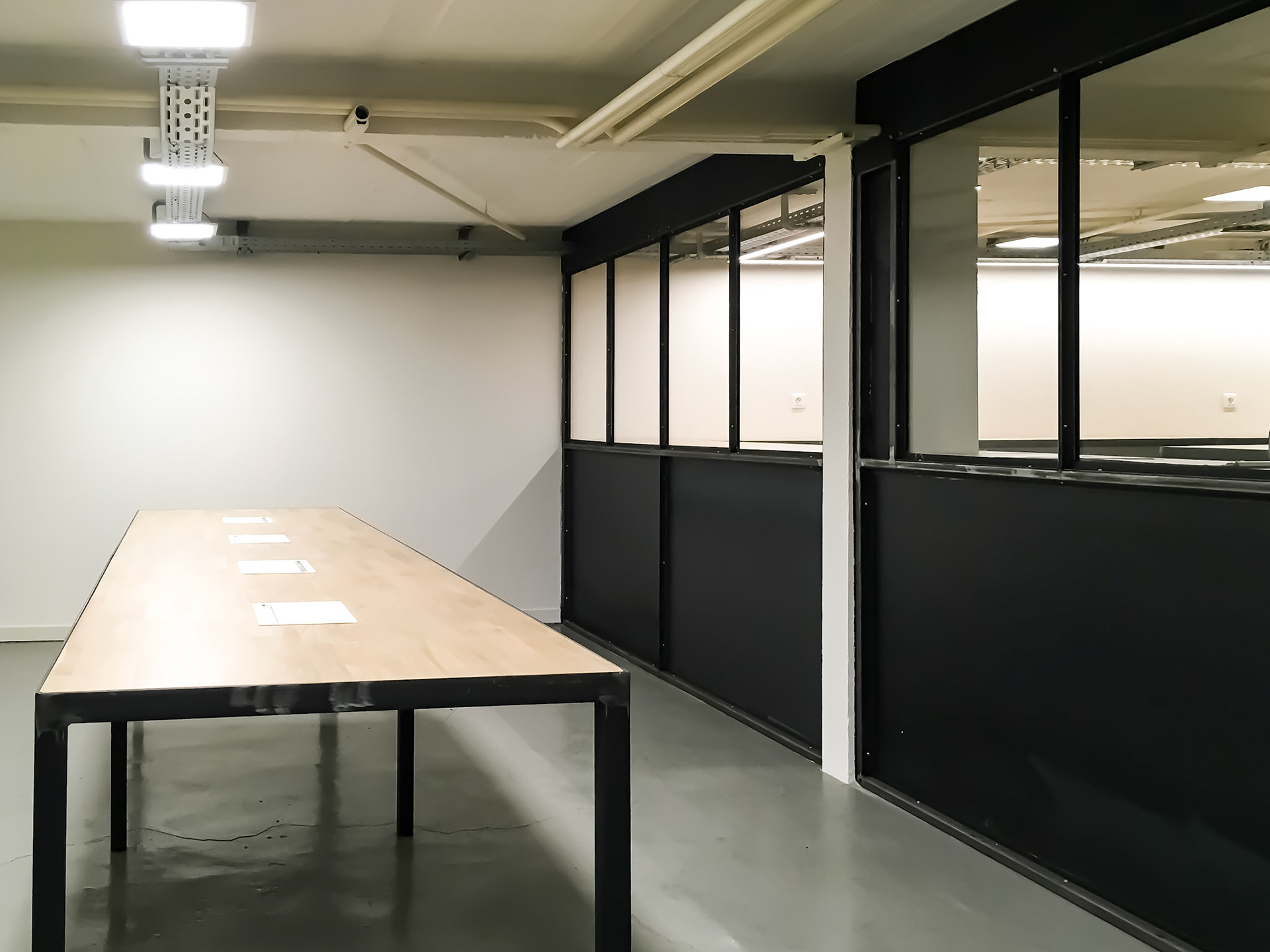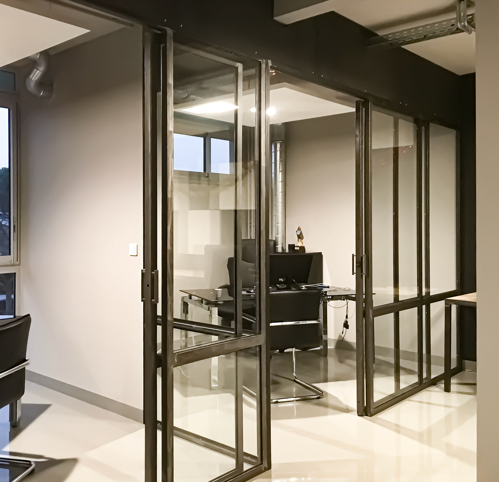 Réhabilitation et réaménagement d'une ancienne pharmacie en local de bureau avec verrières acier sur mesure et design mobilier. (photos Architecture Office)